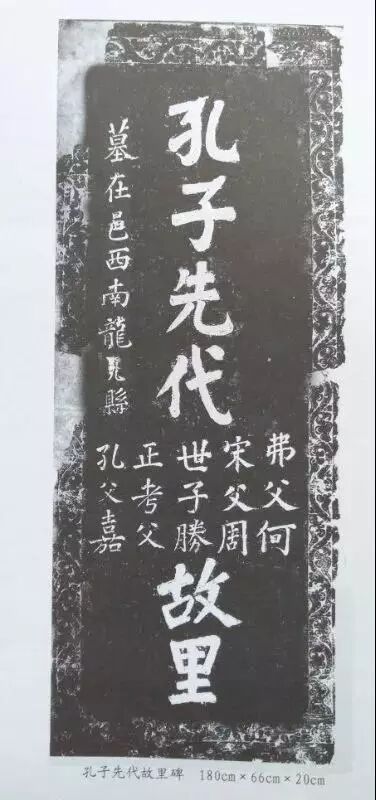 今年7月下旬,连云港市成立孔子学会,永城市有关部门领导以及夫子山景区负责人代表永城人民把这通碑的拓片送上作为贺礼。消息传出,立即收到全国各地的反响,认为这是目前国内发现最早的“孔子先代故里碑”。该碑高1.80米,宽0.66米,厚0.20米,其上阴刻竖排大字:“孔子先代弗父何、宋父周、世子胜、正考父、孔父嘉故里。”左上方镌刻:“墓在邑西南龙亢县”。