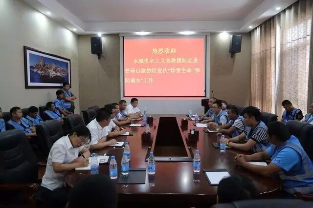 芒砀山旅游区副总经理李广厦、工会主席陈常伟等景区领导与永城市水上义务救援队书记梁辉就水域安全的相关问题等进行了交流。
