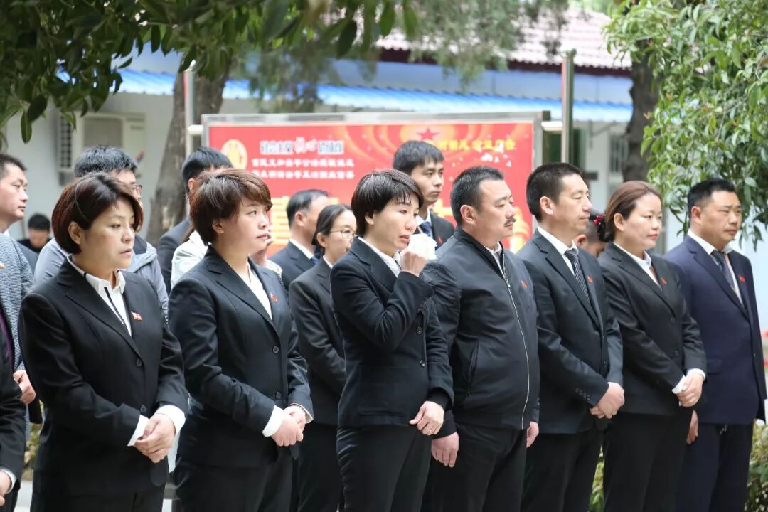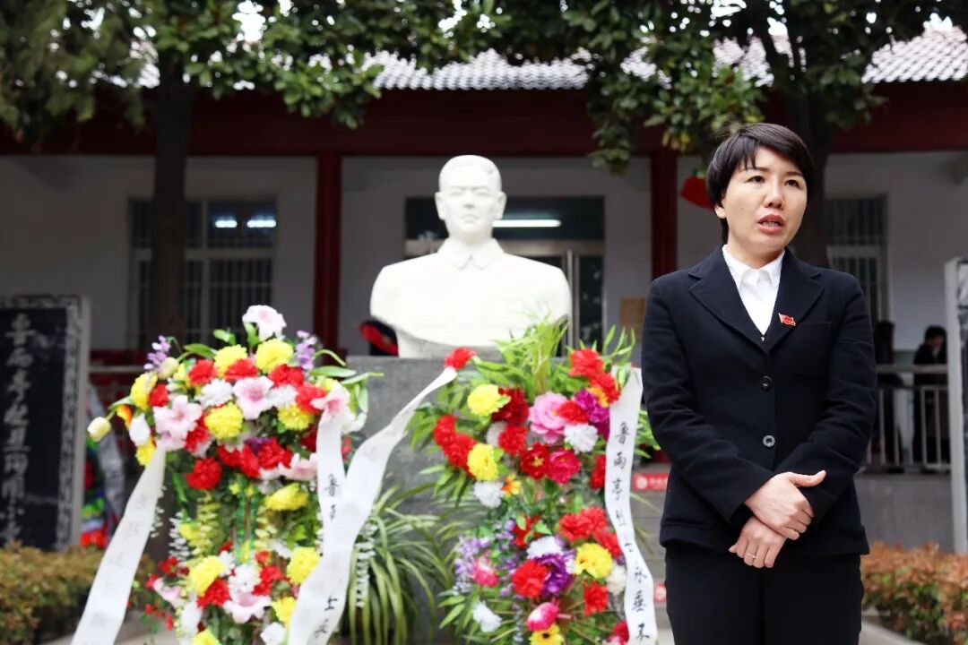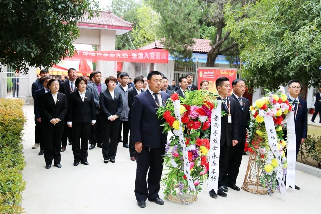 在庄严肃穆的气氛中,大家怀着崇敬的心情,向鲁雨亭同志敬献花篮,默哀鞠躬。并在鲁雨亭塑像前,面对党旗庄严宣誓,重温入党誓词。