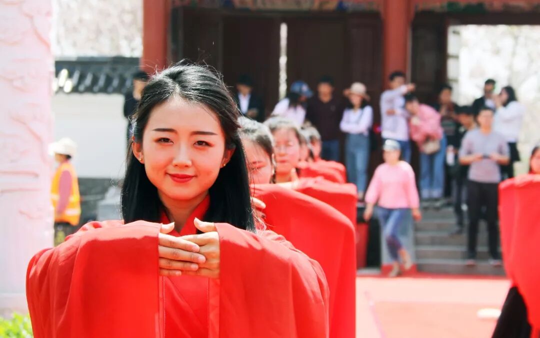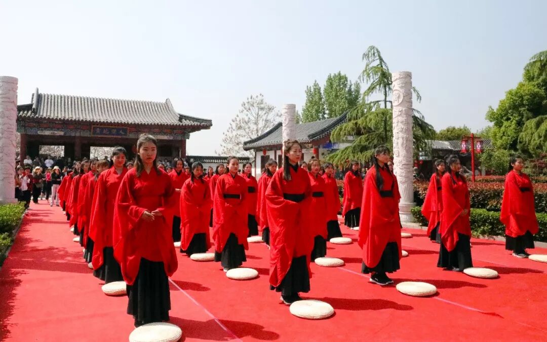 2018-04-18 芒砀山旅游区 浏览 4422 次4月18日,阳光和煦,恰逢三月三上巳节来临,古汉女子及笄礼在芒砀山夫子庙景区举办。现场50位温婉娴淑的女孩席地而坐,进行古代女子的成人礼——及笄礼,吸引了众多游客驻足观看,唤起了众人心中的古典情怀。