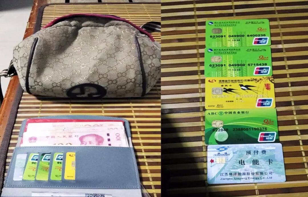 晚上下班后,大汉雄风景区保安左胜利、訾荣登在景区门口发现了一个女性背包,并在钱包内发现有数张银行卡及现金1000多元。由于天色已晚,景区内外已无处寻得游客踪影,他俩想着游客此时得多着急,所以赶快打开包寻找失主信息。